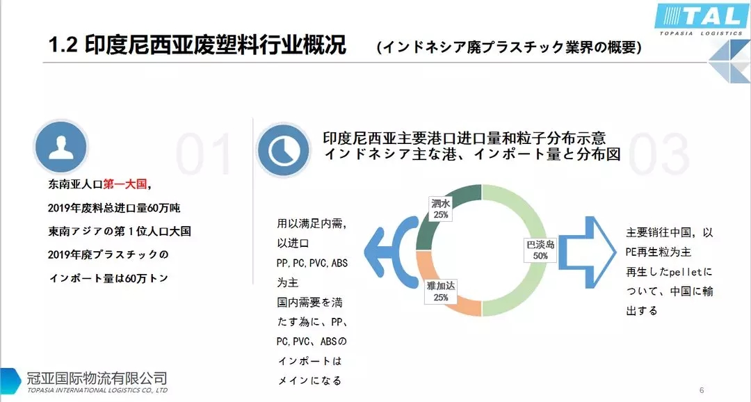 ????????印尼人口超過2億,是東南亞第一大人口國。進口廢塑料主要港口是雅加達,泗水,巴淡島;2019年廢料總進口量約60萬噸。