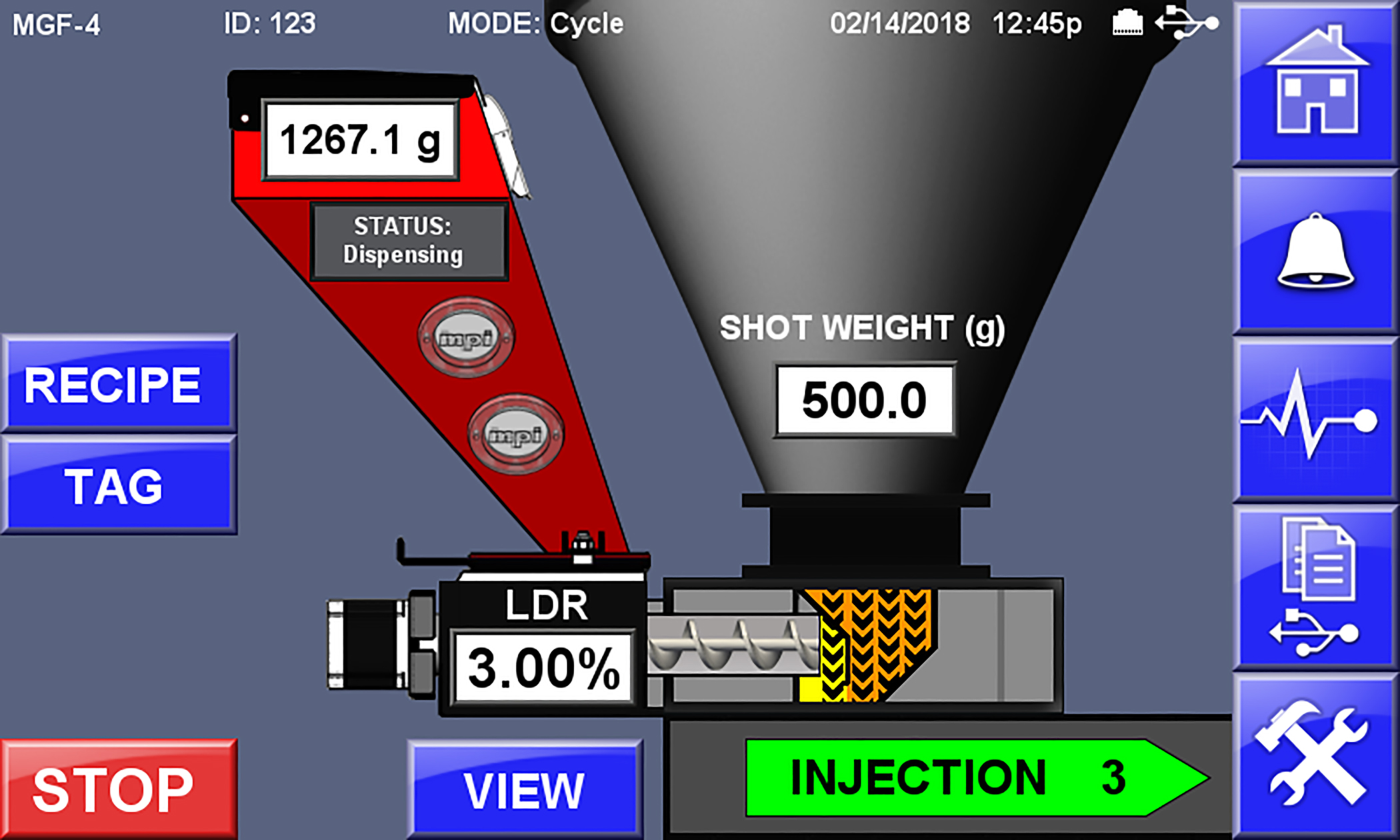 ????????與傳統(tǒng)喂料不同的是這種正在申請(qǐng)專(zhuān)利的控制系統(tǒng)可以在注塑階段同時(shí)計(jì)量加入色母,這使色母分散更均勻并節(jié)省成本。美鍇產(chǎn)品有限公司 (Maguire Products, Inc.) 在 K-2019 展上作為 MGF?重力喂料機(jī)的新功能介紹了該技術(shù)。在注塑成型周期中,大約 75% 的原料在回退階段進(jìn)入螺桿,大約 25% 在注塑期間進(jìn)入螺桿。由于傳統(tǒng)喂料機(jī)僅在回退過(guò)程中添加色母,因此可能會(huì)發(fā)生混合不足。當(dāng)注射量接近螺桿容量或最終產(chǎn)品為半透明時(shí),這尤其是個(gè)問(wèn)題。在新的 100% Injection Coloring系統(tǒng)中,MGF?喂料機(jī)上的專(zhuān)用控制器在兩個(gè)階段都接收來(lái)自成型機(jī)的信號(hào),從而確保在整個(gè)周期中都添加色母。