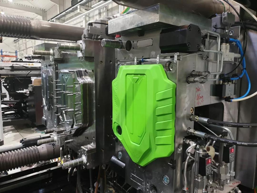 ????????該技術于2019年5月在廣州的中國國際橡塑展上展出。圖3是展示的發動機蓋樣品,熱塑性塑料基體原料為AKROMID B3 GF 20 2RM-D(4164)(Akro-Plastic GmbH),表面PU包覆成型原料為Puriflow 911(VottelerLackfabrikGmbH&Co.KG)。該方案還將在全球最大的塑料與橡膠工業展德國K展2019再度亮相,將展示更高的智能化水平。