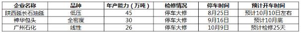 ????????10月國內PE大修裝置: