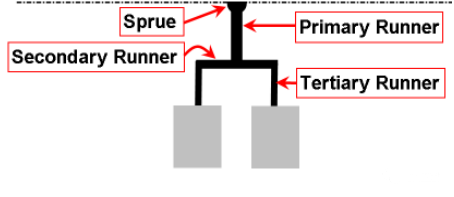 ????????通常,射出工藝不應(yīng)超過90%的機(jī)臺(tái)最大壓力。在做出的壓力降曲線中,如果處于“壓力受限”或者超過90%的機(jī)臺(tái)壓力,找出壓力曲線中比較陡的一段,嘗試去減小此處的壓力損失。例如,在右圖中,次流道的壓力降很大,意味著在這一段需要很大的力量來推動(dòng)塑膠的流動(dòng)。加大此段的流道直徑會(huì)對(duì)降低壓力有幫助。