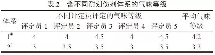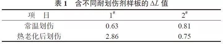 ????????其中,添加酰胺類耐劃傷劑的材料為1#,添加有機硅類耐劃傷劑的材料為2#。