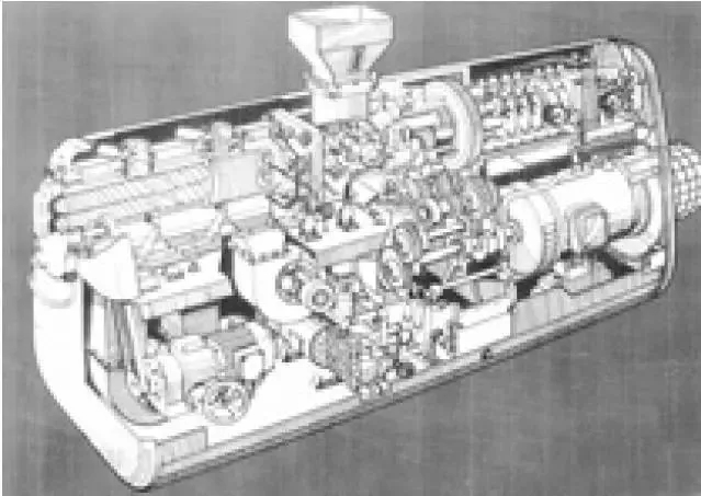 ????????1939年,Colombo對(duì)雙螺桿擠出機(jī)進(jìn)行改進(jìn),最大直徑做到109mm。同年,他獲得了第一個(gè)客戶(hù)——德國(guó)IG法本公司。雙螺桿擠出機(jī)開(kāi)始得到市場(chǎng)認(rèn)可。