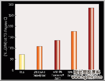 從表3.1中可以看出,增塑的聚氯乙烯和純的熱塑性聚氨酯硬度分歧不大,由于,隨TPU塑膠量的增長的分歧配比,硬度轉變也不太大;在TPU為分別相時,對應的TPU/PVC共混物拉伸強度都要高于純的TPU;隨TPU量增長,TPU逐步改釀成延續(xù)相時,共混物拉伸強度有降落的趨向,只是在TPU作為延續(xù)相而且大批、由于Fusabond? 560D存在出格為尼龍6設計的化學結構,它在前進尼龍6抗沖性能的同時,也能前進其在模具內的加工性能。與現(xiàn)有核心體增韌劑對照,盤曲模量喪失小,概況光潔度好,本錢低廉,且可在室溫到-20 ℃條件下連結彈性等其他功效。