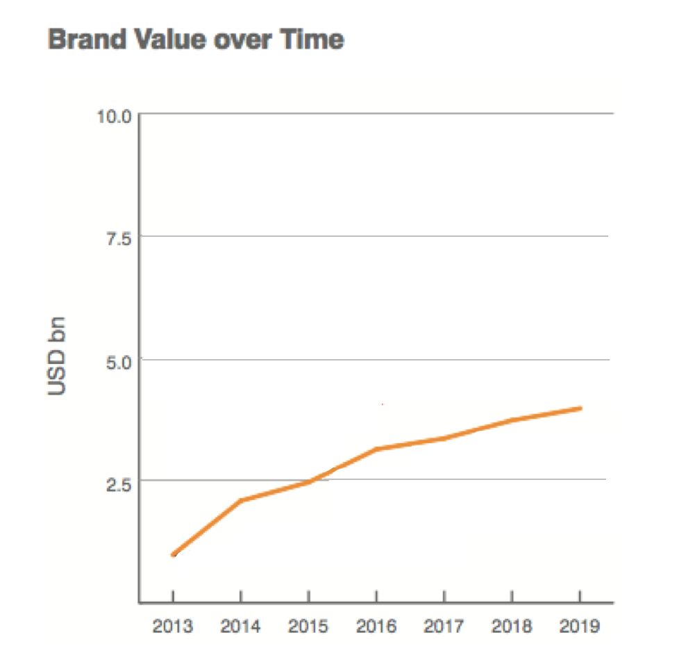 近日,英國獨立品牌評估機構 Brand Finance 發布了《2019全球最有價值的10大化學品牌排行榜》, SABIC 以39.64億美元的品牌估值位列第三 ,榮摘“探花”!這已經是SABIC連續實現品牌價值增長的第五年 啦, SABIC也是今年該報告中唯一上榜的中東企業。