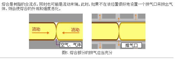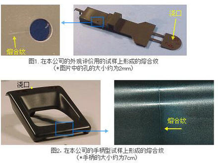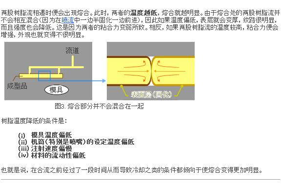 熔合紋在樹脂合流之處有開孔的部分會出現。
