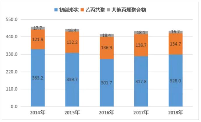 ????????近幾年,一方面國內(nèi)聚丙烯產(chǎn)能大幅增長,另一方面中東天然氣和石油伴生氣等濕氣資源富裕,加上美國頁巖氣革命,不斷推進(jìn)裂解原料輕質(zhì)化,導(dǎo)致丙烯增長緩慢,聚丙烯新增產(chǎn)能不多。在此情況下,近年來我國聚丙烯進(jìn)口量穩(wěn)中有降,進(jìn)口依存度快速下降,由十多年前的超過30%下降到不足20%。2014—2018年中國聚丙烯進(jìn)口量變化詳見圖3。