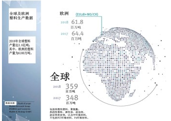 ????????根據全球領先的泛歐洲協會——歐洲塑料協會(PlasticsEurope)發布的《塑料——2019年事實與數據》報告統計,2018年全球塑料產量達3.6億噸;其中,歐洲的塑料產量為6180萬噸,與2017年的6440萬噸相比有所下降。