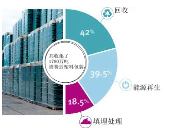 ????????歐洲塑料協會還特別指出,自從2016年以來,用于回收的消費后塑料包裝增長了92%。具體而言,2018年歐洲共收集了1780萬噸消費后塑料包裝,其中42%用于回收,39.5%用于能源轉換,18.5%用于填埋處理。