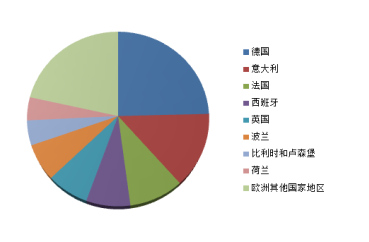 ????????歐洲本土的塑料加工商對塑料需求量為5120萬噸,按地域分布劃分,德國塑料加工商的需求量最大,為24.6%,其次分別為意大利(13.9%),法國(9.4%),西班牙(7.6%),英國(7.3%),波蘭(6.8%),比利時和盧森堡(4.6%),荷蘭(4.3%),其他歐洲國家地區共占21.5%。