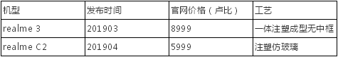 ????????realme ?在印度推出的部分塑膠外殼機型信息: