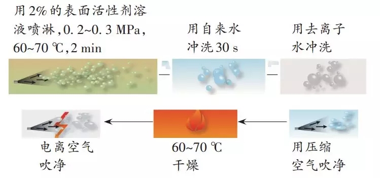 ????????塑料表面在制成工藝過程中常被脫模劑、油污或臟物污染,涂裝前必須進行清潔處理,例如在強力洗滌裝置中采用酸性或堿性介質進行清洗,如圖1所示。