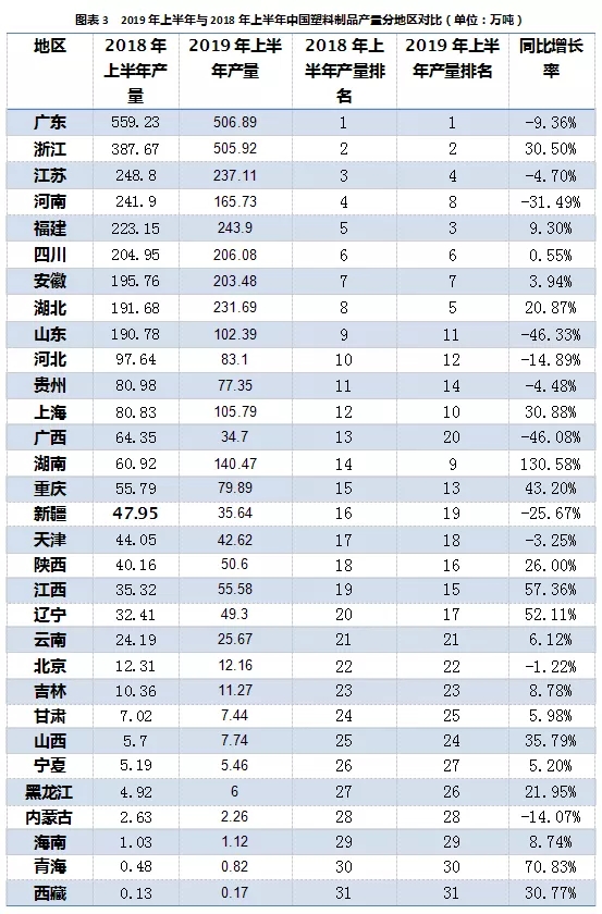 ????????2018年上半年產量前10名,山東、河北跌出2019年上半年產量前10,湖南、上海進入2019年上半年前10。