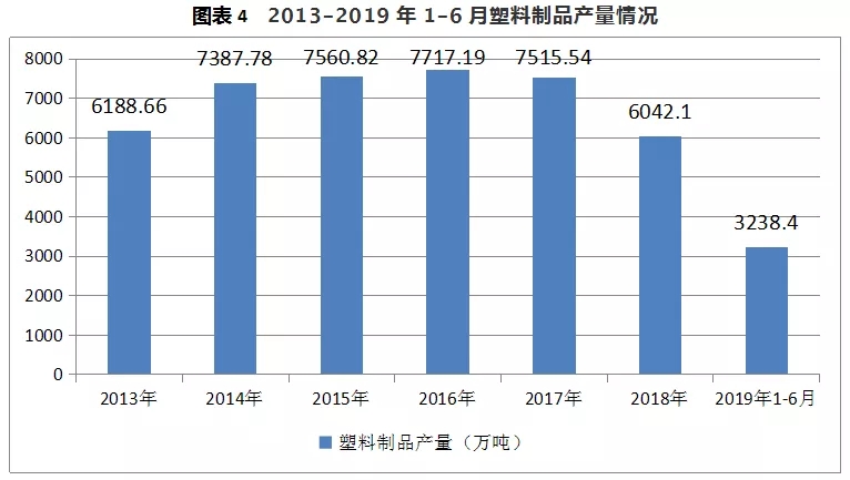????????按6月規模企業統計:1-6月中國規模以上工業企業塑料制品產量累計為3238.4萬噸,同比增長了2.6%;其中,6月份產量為633.1萬噸,同比增長8.8%。按每月規模企業統計: 1-6月中國規模以上工業企業塑料制品產量累計為3240.8萬噸,同比下降12.05%;其中,6月份產量為633.1萬噸,環比增長1.95%,同比增長7.16%。