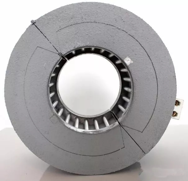 ????????傳統(tǒng)加熱圈通過接觸傳導(dǎo)方式把熱量傳遞到機(jī)筒,其中有一半的熱量散發(fā)到了空氣中;保溫型的紅外線加熱圈,發(fā)熱效率高,導(dǎo)向性的輻射可將熱量直接轉(zhuǎn)換成機(jī)筒上的溫度,避免熱量的散發(fā)。其外觀結(jié)構(gòu)如圖5、圖6、圖7。