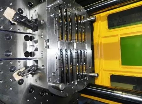 ????????5. 兩個獨立的頂出系統,頂棍也是兩個。后模兩個產品相同,頂針都相同,是旋轉關系,切不可做成平移關系。